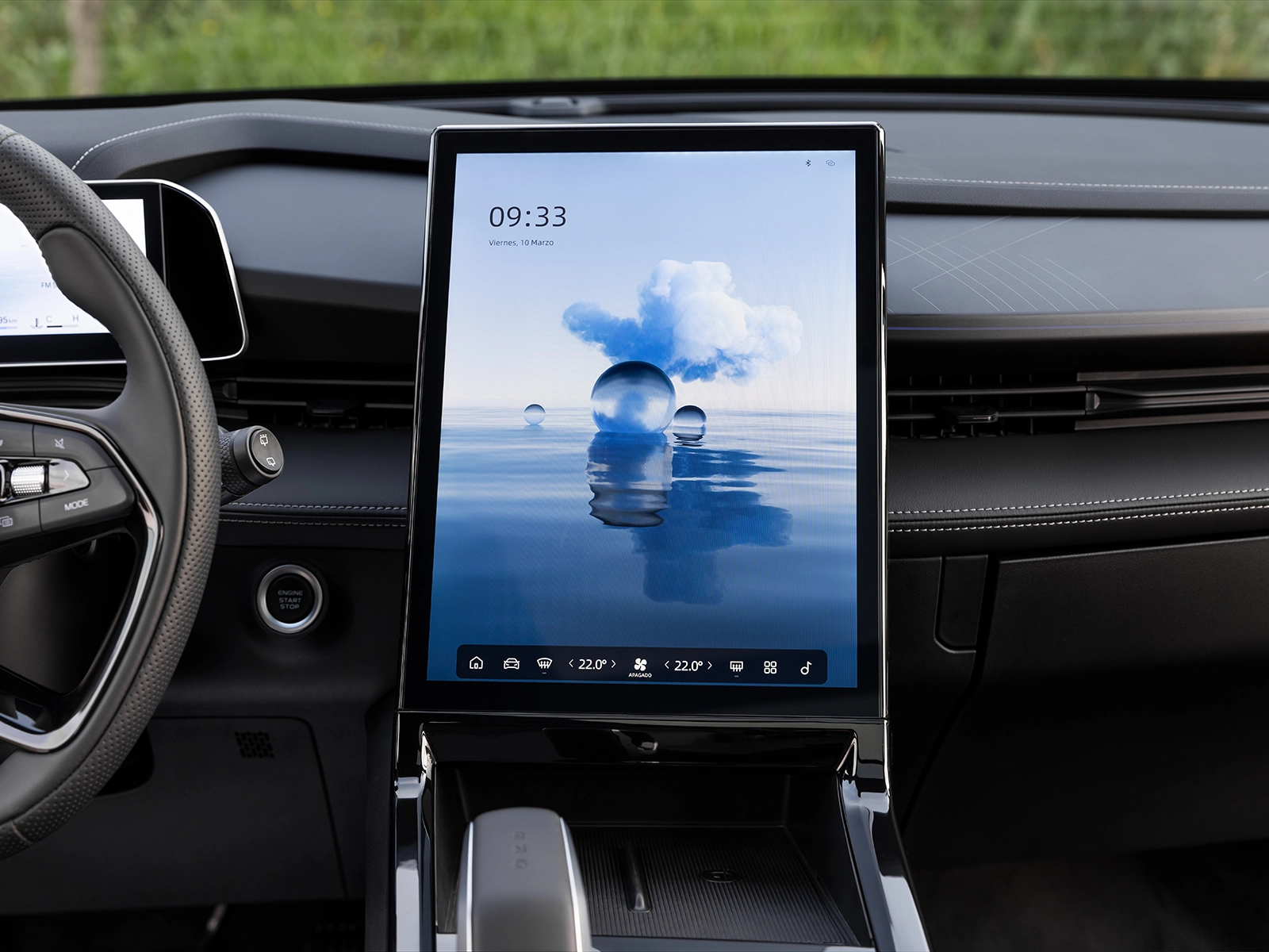 Pantalla central HD con excelente visibilidad, perfecta para navegación y entretenimiento.